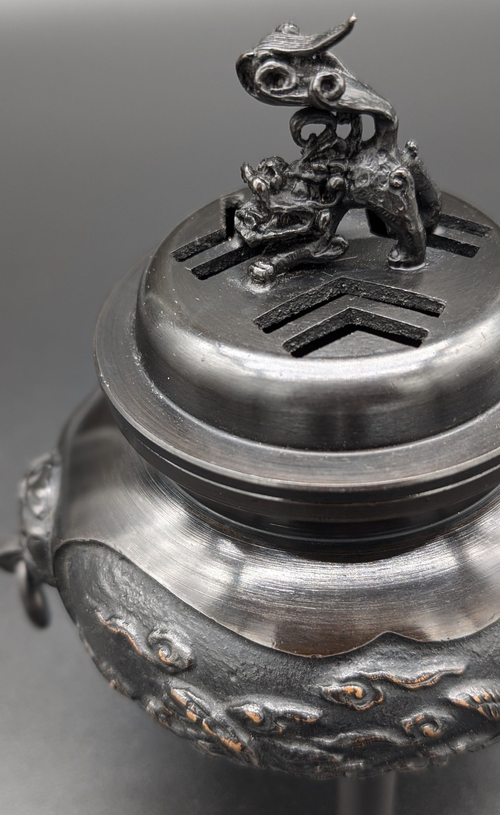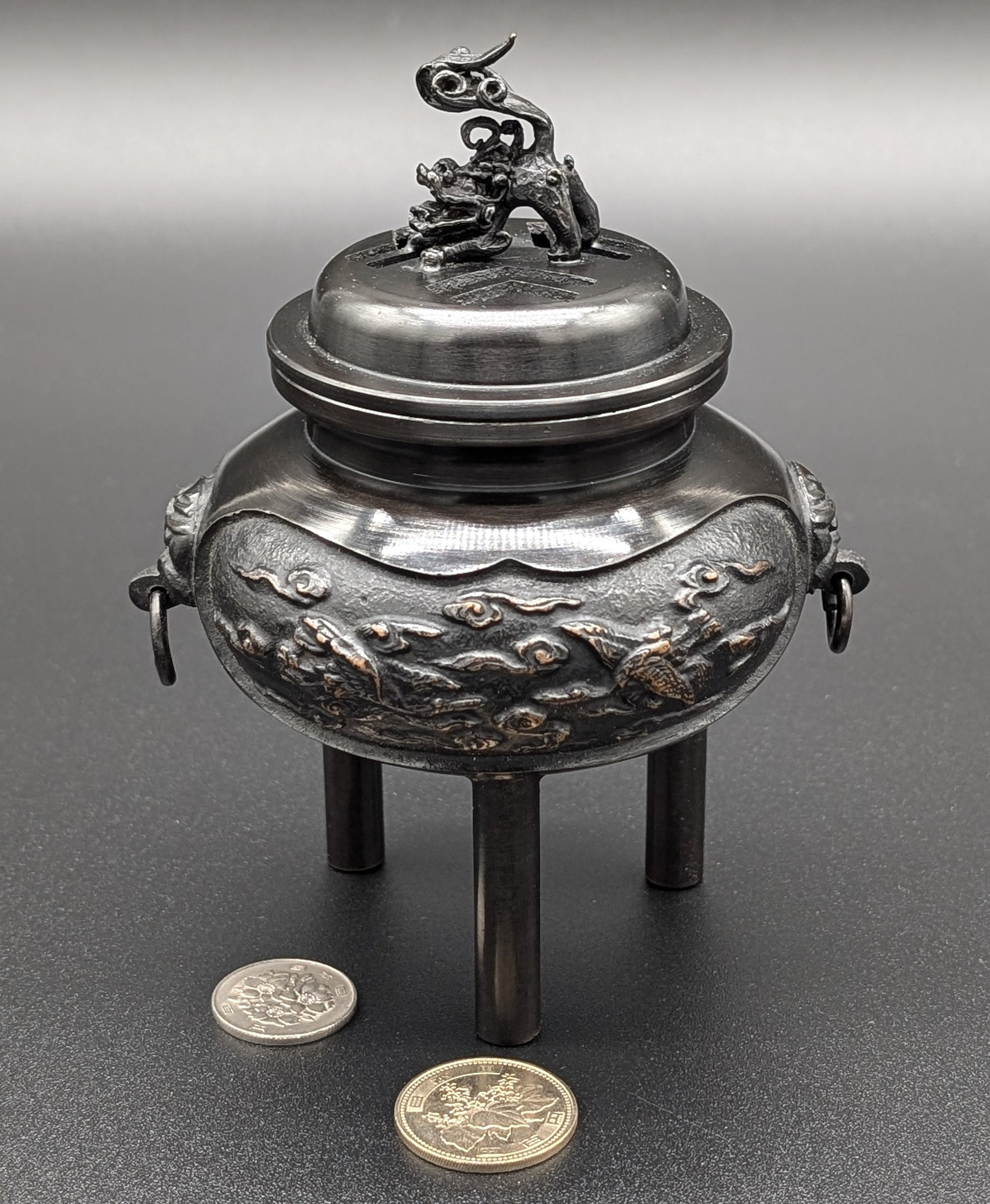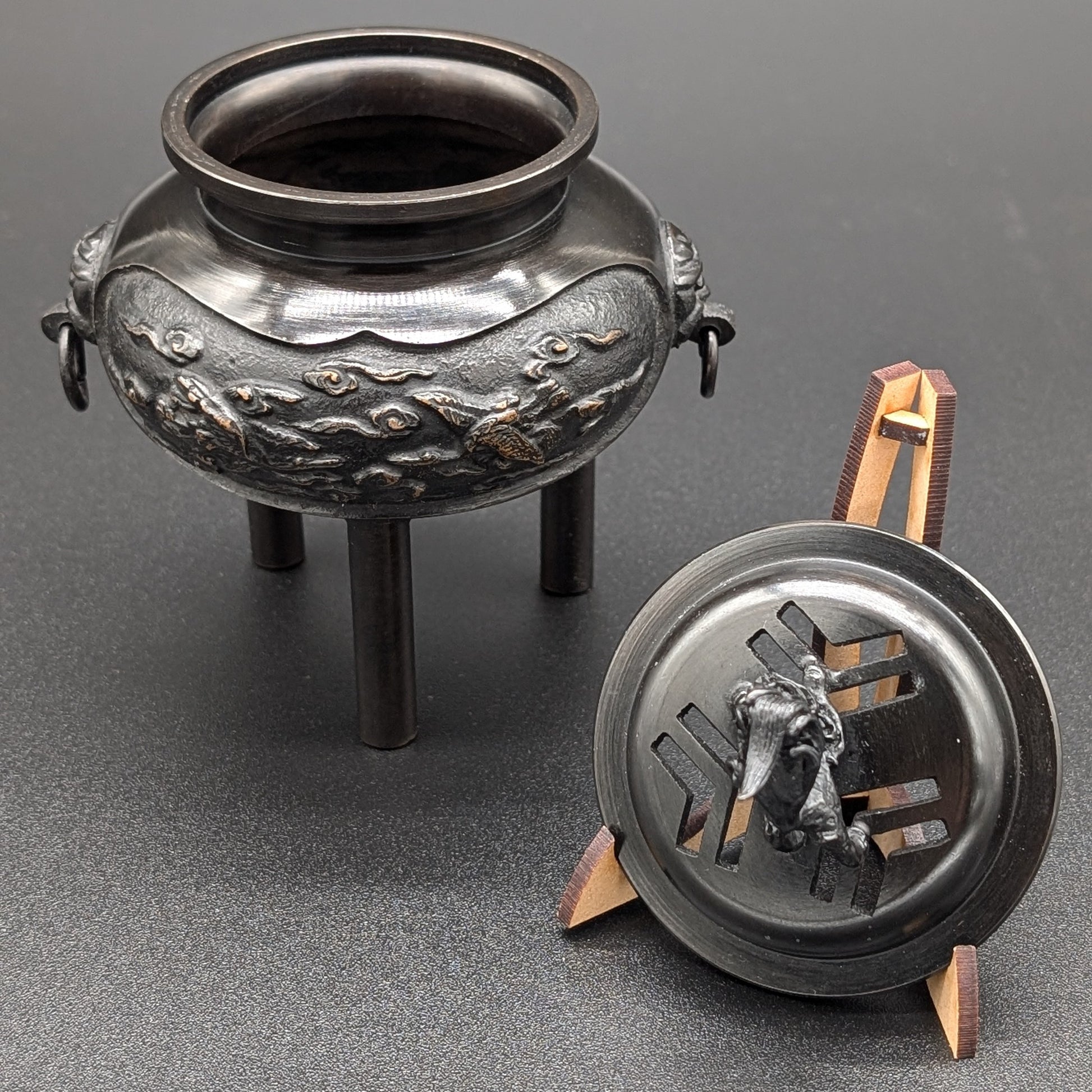 VINTAGE INCENSE BURNER with Lion and Crane by ZUIHOU TRUE JAPANESE ARTISAN